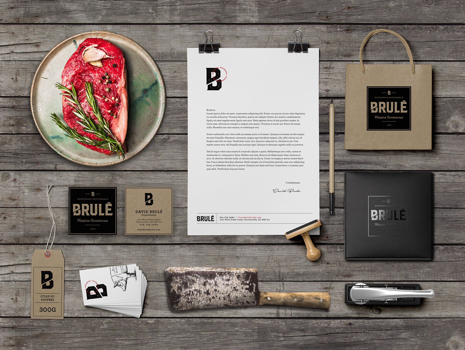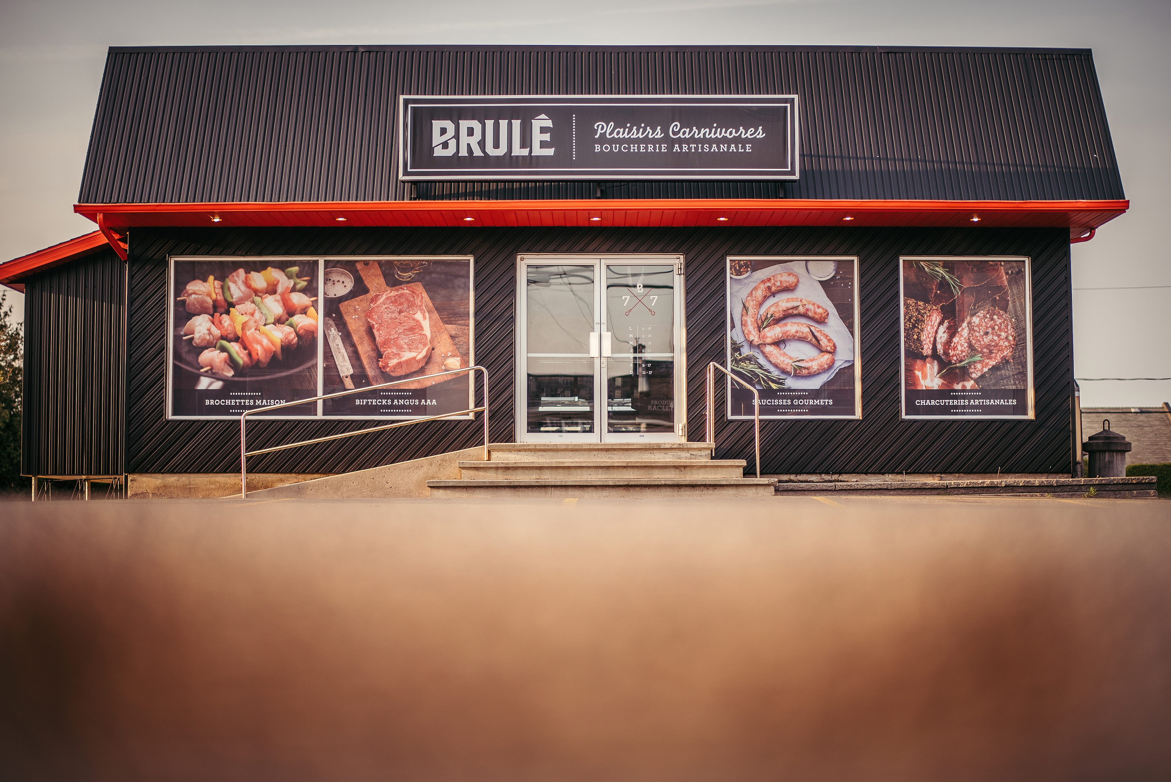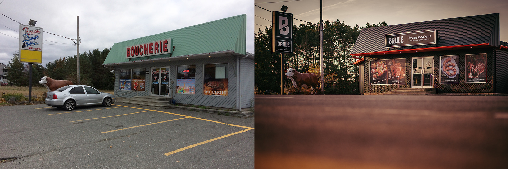 Nouvelle identité visuelle pour Brulé Boucherie Artisanale anciennement Boucherie Benoît Brulé. Direction du projet de revitalisation extérieure et conception de la nouvelle image.